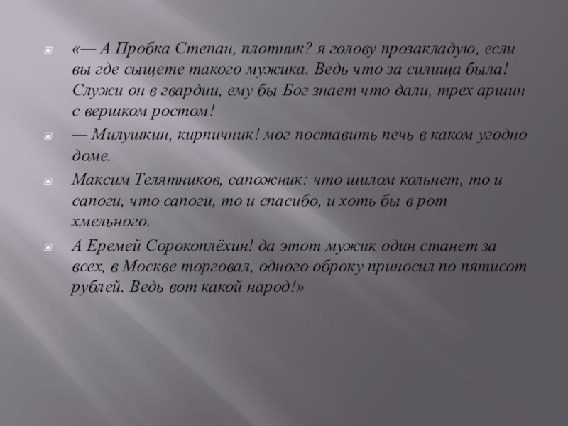 Слайд 121«— А Пробка Степан, плотник? я голову прозакладую, если вы где