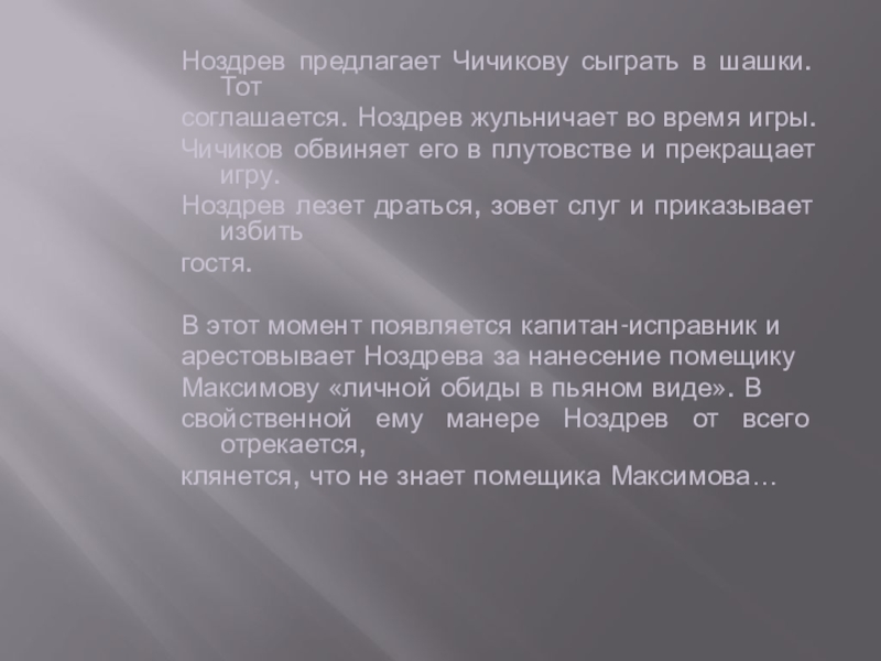 губернаторскую дочку, а Ноздрев ему помогал, при этом вдается в