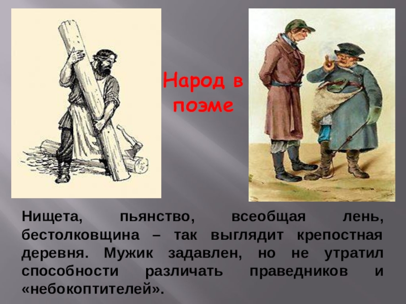 деревня. Мужик задавлен, но не утратил способности различать праведников и «небокоптителей».