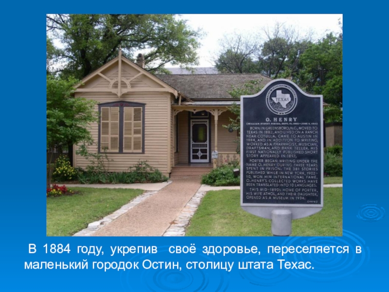 Слайд 7 Когда он жил в Остине, то еще не был знаменит.