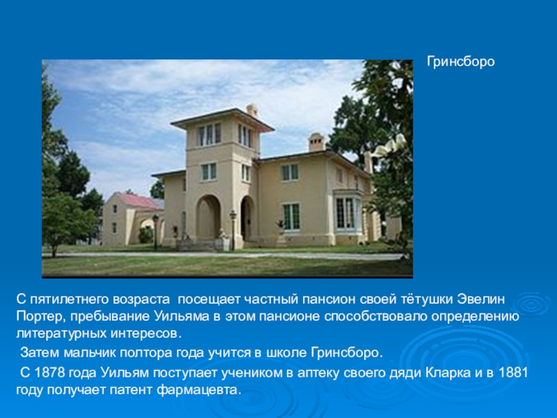 Уильяма в этом пансионе способствовало определению литературных интересов.