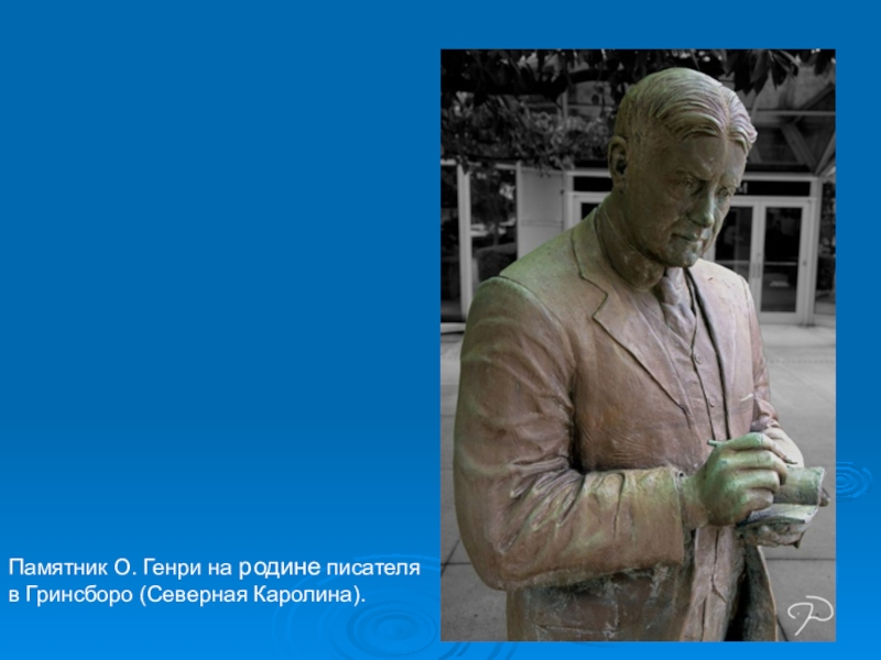 Слайд 17Памятник О. Генри на родине писателя в Гринсборо (Северная Каролина).