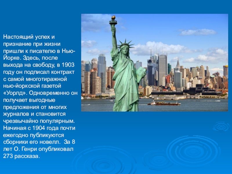 Слайд 13Настоящий успех и признание при жизни пришли к писателю в Нью-Йорке.