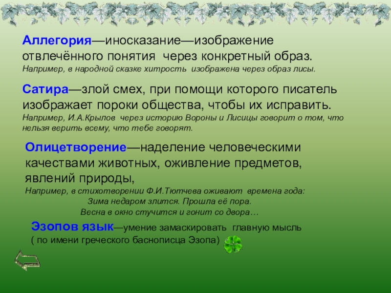 Олицетворение—наделение человеческими качествами животных, оживление предметов, явлений природы,