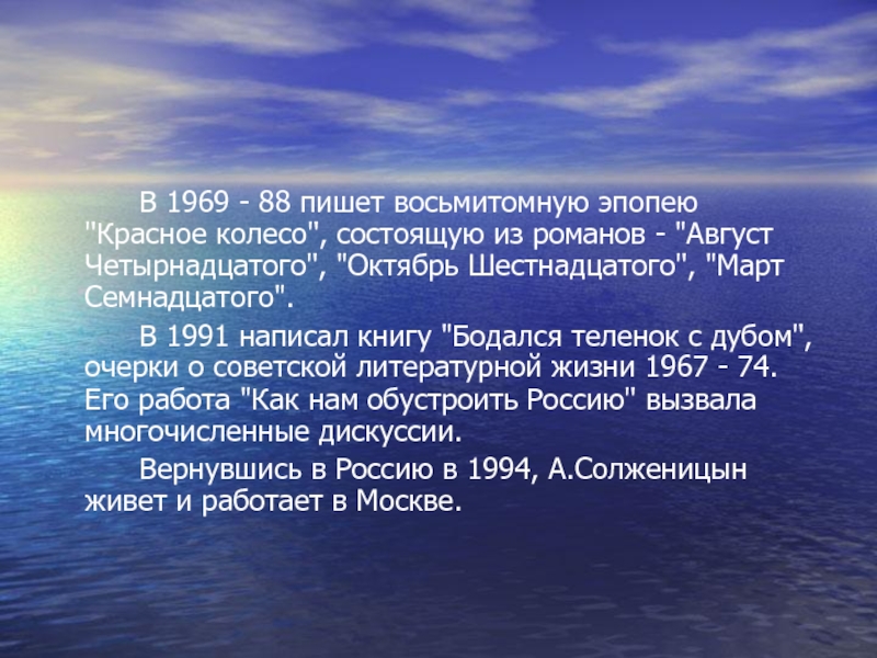 В 1969 - 88 пишет восьмитомную эпопею "Красное колесо", состоящую из