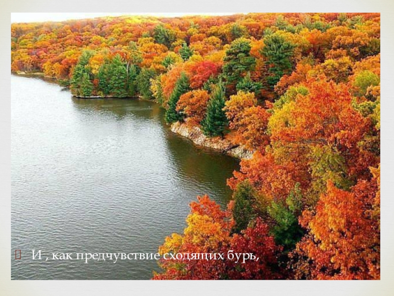 Слайд 3Зловещий блеск , и пестрота дерев,