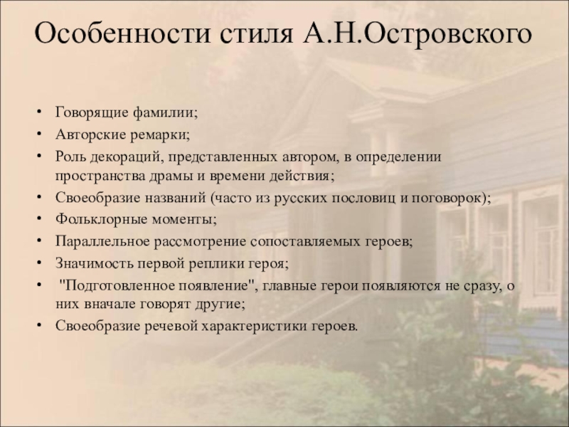 Экспозиция рассказывает о сценическом воплощении пьес А. Н. Островского на сцене русского театра — в ней представлены эскизы декораций и костюмов, фотопортреты актеров, афиши, рукописи.