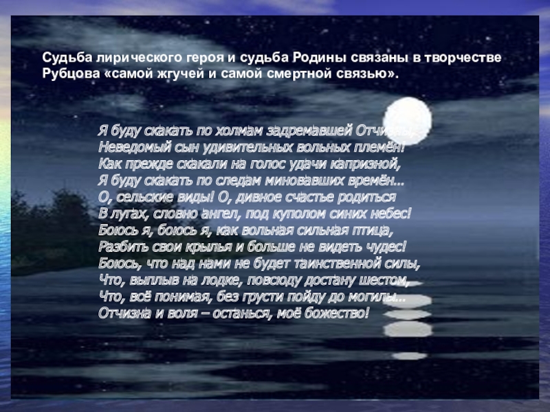 Судьба лирического героя и судьба Родины связаны в творчестве Рубцова «самой жгучей и самой смертной связью».