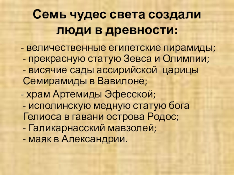 - висячие сады ассирийской царицы Семирамиды в Вавилоне;