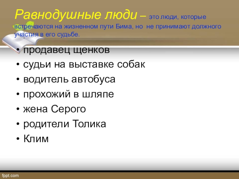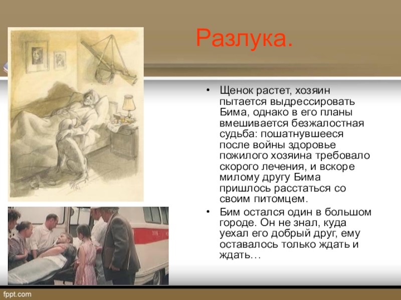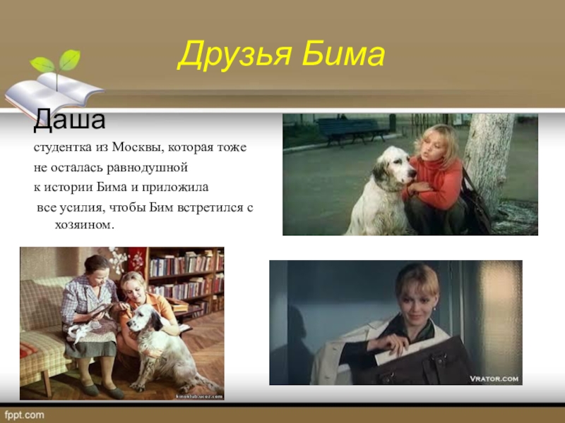 следит за Бимом в отсутствии хозяина.