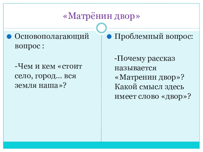 -Почему рассказ называется «Матренин двор»? Какой смысл здесь имеет слово «двор»?