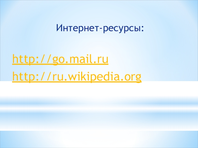 Интернет-ресурсы:http://go.mail.ruhttp://ru.wikipedia.org
