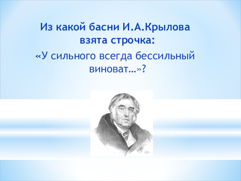 Из какой басни И.А.Крылова взята строчка:«У сильного всегда бессильный виноват…»?