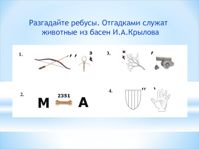 Разгадайте ребусы. Отгадками служат животные из басен И.А.Крылова