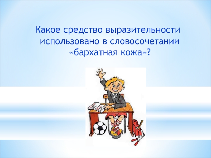 Слайд 39Какое средство выразительности использовано в словосочетании «бархатная кожа»?