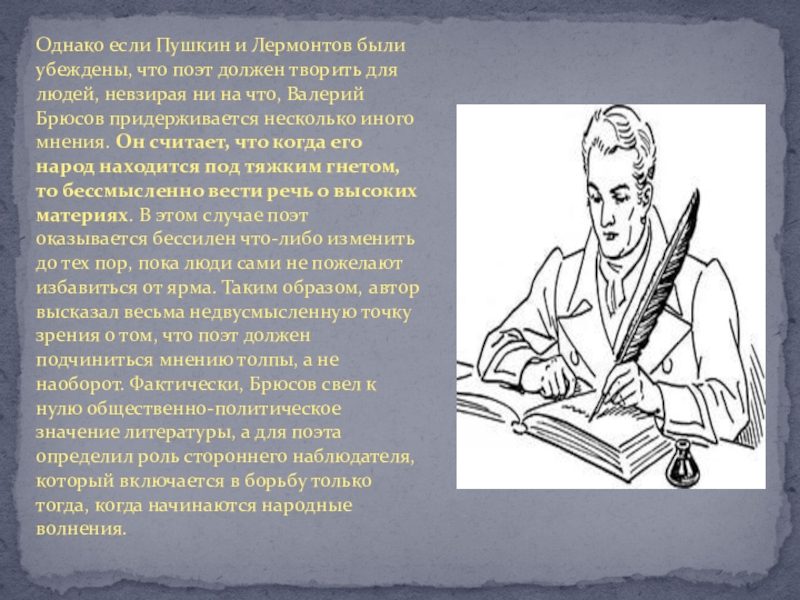 Слайд 16Однако если Пушкин и Лермонтов были убеждены, что поэт должен творить