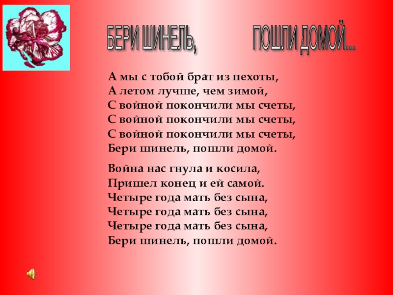 БЕРИ ШИНЕЛЬ, ПОШЛИ ДОМОЙ...