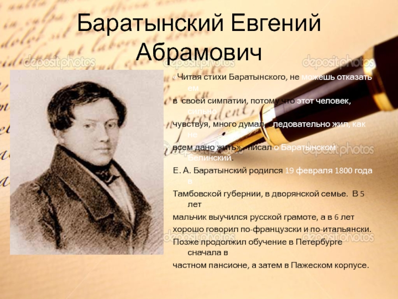 Е. А. Баратынский родился 19 февраля 1800 года в