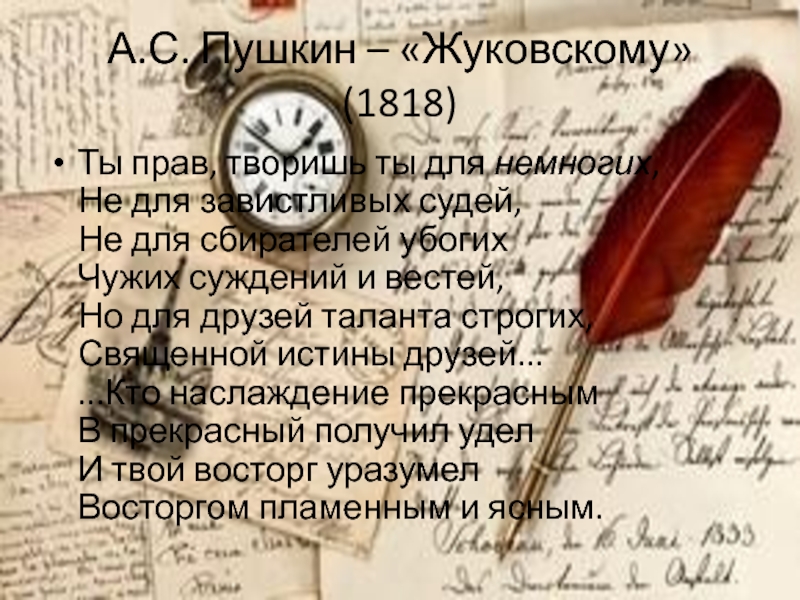 Слайд 4А.С. Пушкин – «Жуковскому» (1818)