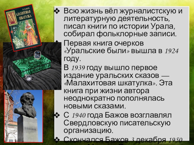 Презентация, доклад по литературе П.П.Бажов (5 класс)