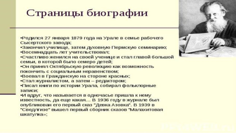 Презентация, доклад по литературе П.П.Бажов (5 класс)