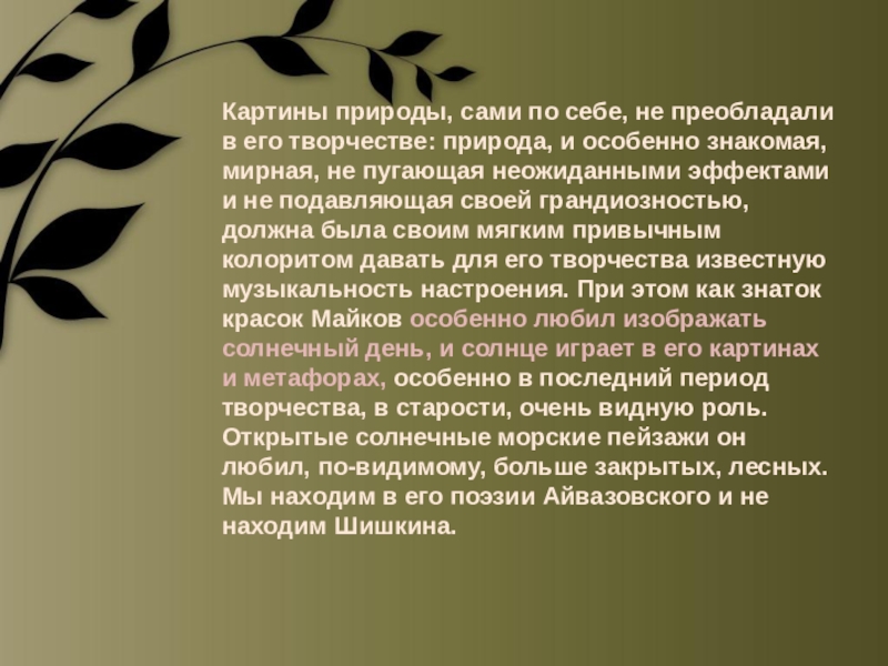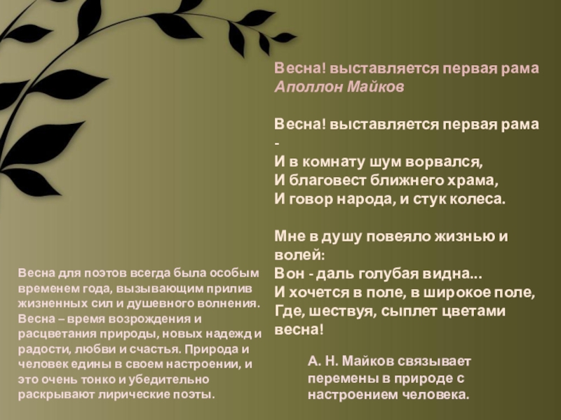 А. Н. Майков связывает перемены в природе с настроением человека.