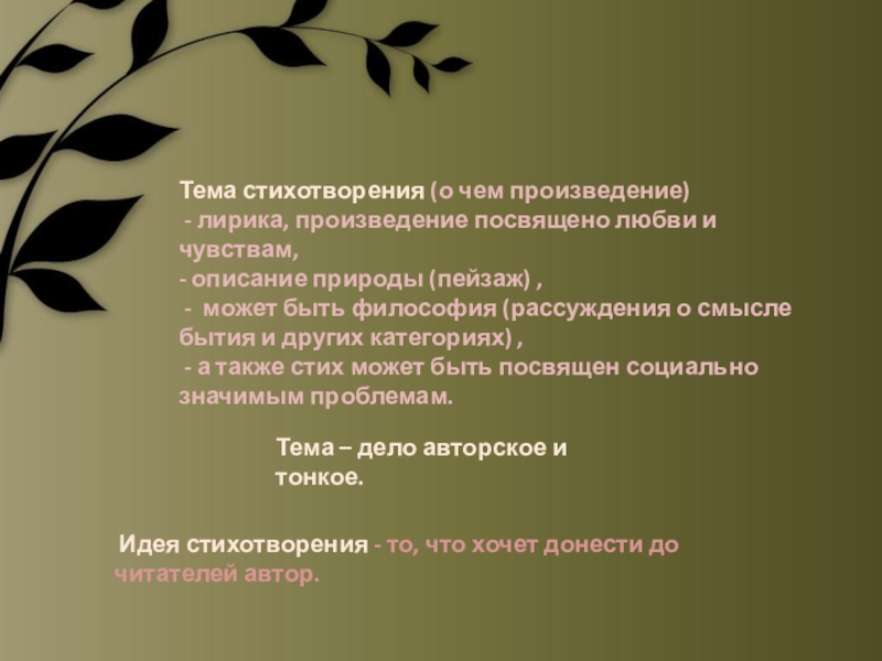 Идея стихотворения - то, что хочет донести до читателей автор.