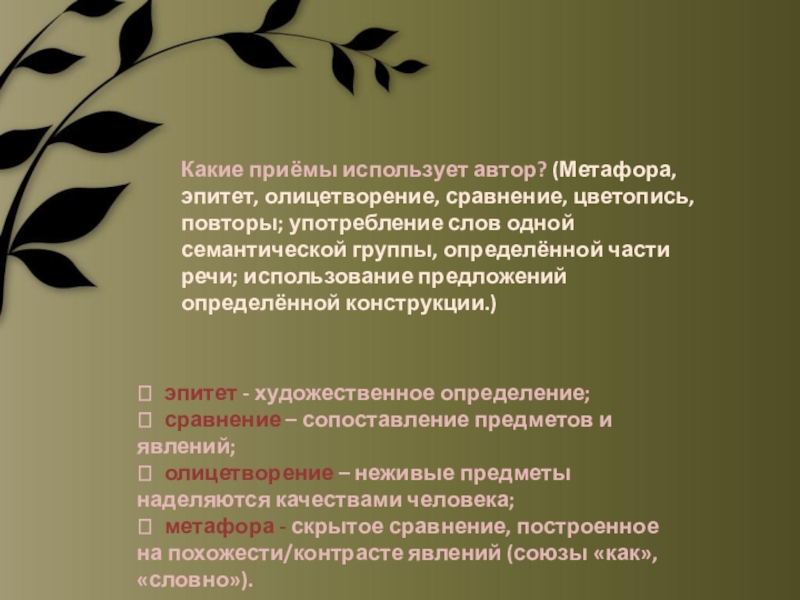 метафора - скрытое сравнение, построенное на похожести/контрасте явлений (союзы «как»,«словно»).