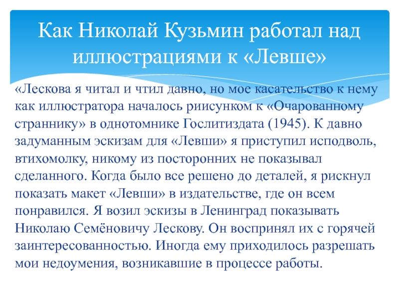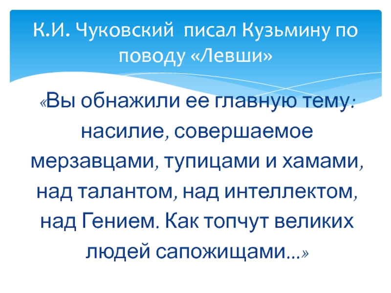 К.И. Чуковский писал Кузьмину по поводу «Левши»