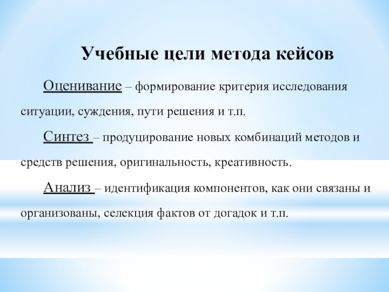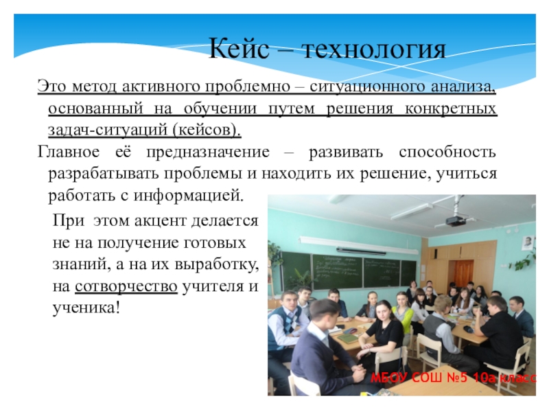 на обучении путем решения конкретных задач-ситуаций (кейсов).