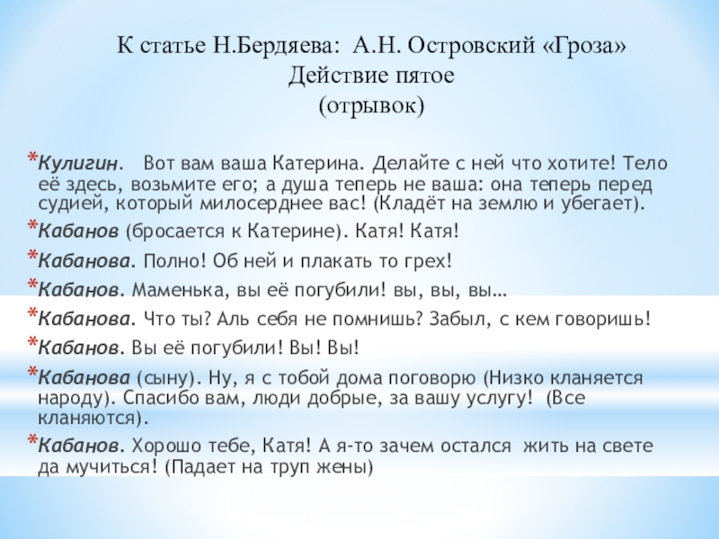 Слайд 19К статье Н.Бердяева: А.Н. Островский «Гроза»