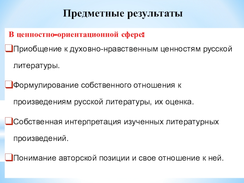 Приобщение к духовно-нравственным ценностям русской литературы.
