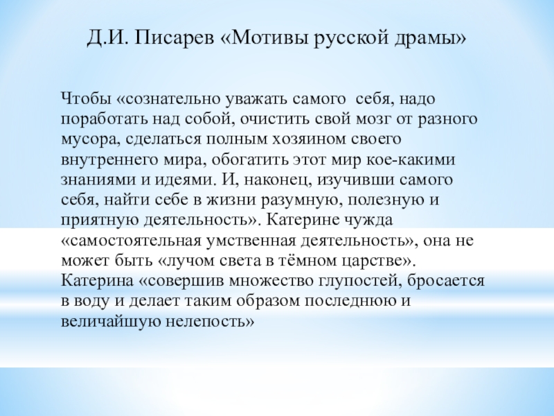 Слайд 14Д.И. Писарев «Мотивы русской драмы»