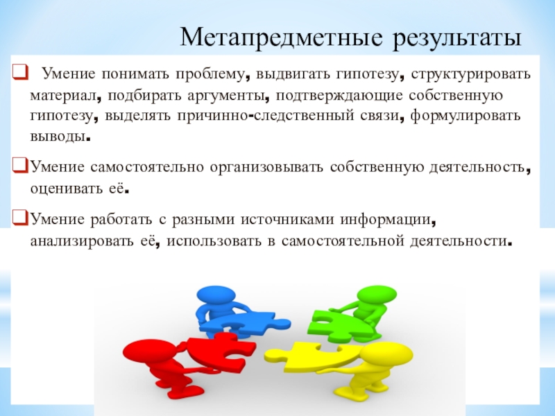 Умение понимать проблему, выдвигать гипотезу, структурировать материал, подбирать аргументы,