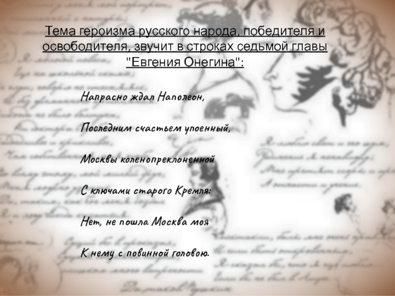 Слайд 18Тема героизма русского народа, победителя и освободителя, звучит в строках седьмой