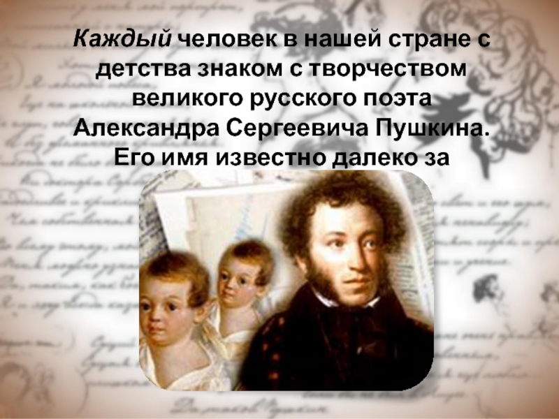 Слайд 6Каждый человек в нашей стране с детства знаком с творчеством великого