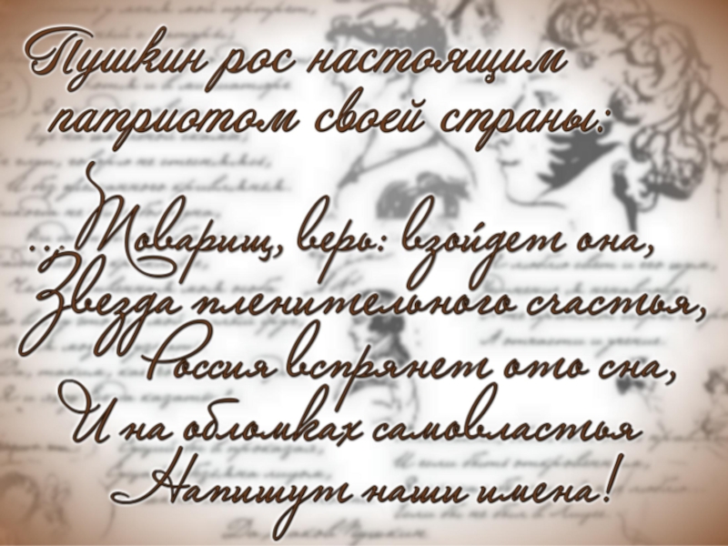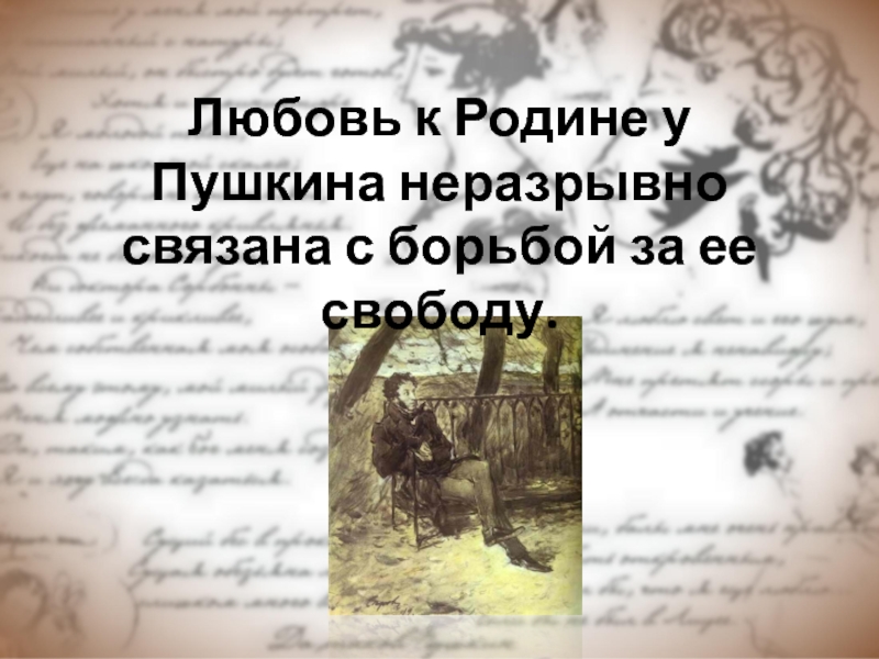 Слайд 16Любовь к Родине у Пушкина неразрывно связана с борьбой за ее