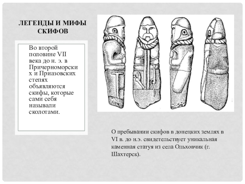 О пребывании скифов в донецких землях в VI в. до н.э. свидетельствует уникальная каменная статуя из села Ольховчик (г.Шахтерск).