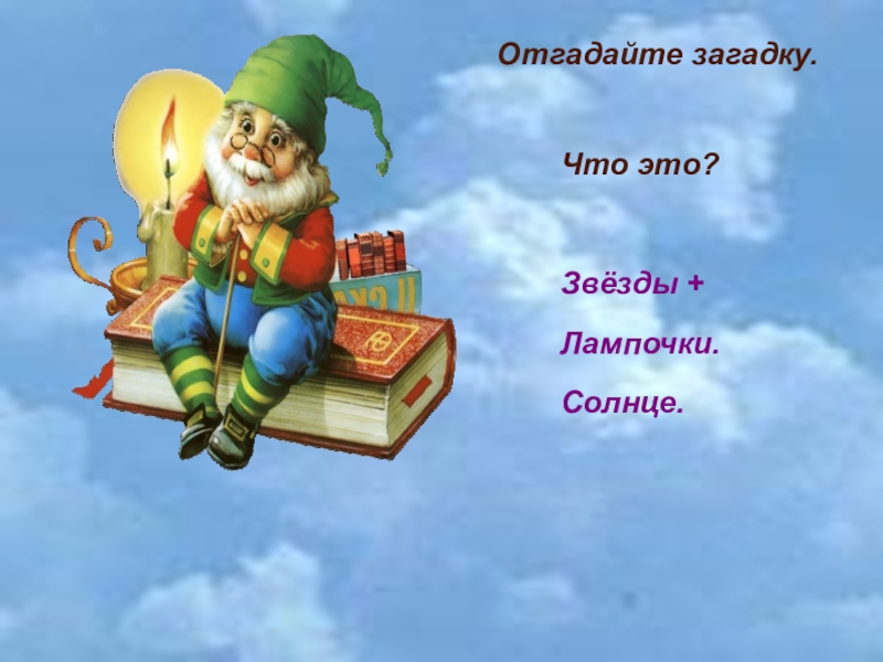 Отгадайте загадку.Что это?Звёзды +Лампочки.Солнце.