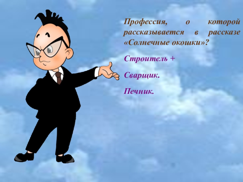Слайд 4Профессия, о которой рассказывается в рассказе «Солнечные окошки»?