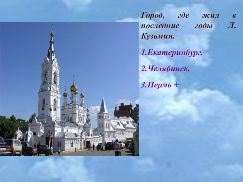 Город, где жил в последние годы Л.Кузьмин.1.Екатеринбург.2.Челябинск.3.Пермь +