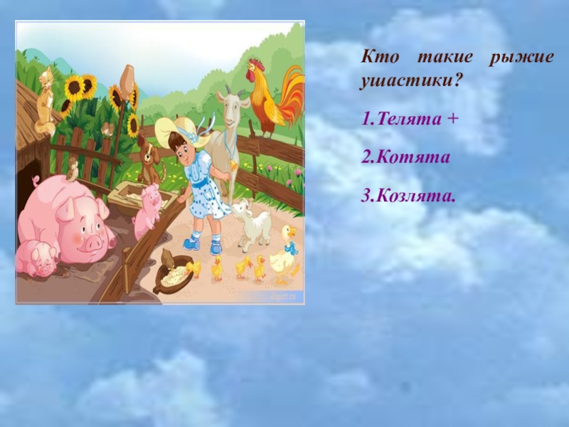 Кто такие рыжие ушастики?1.Телята +2.Котята3.Козлята.