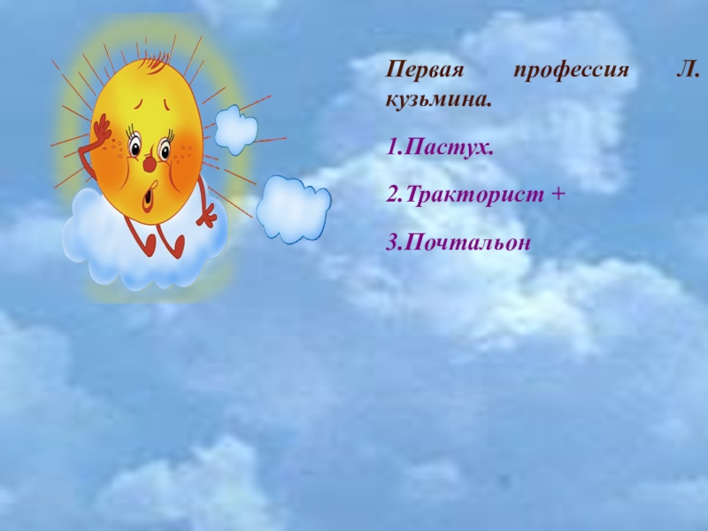 Первая профессия Л.кузьмина.1.Пастух.2.Тракторист +3.Почтальон