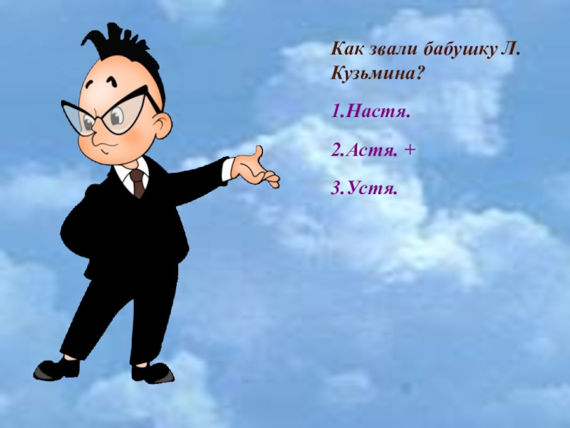 Как звали бабушку Л.Кузьмина?1.Настя.2.Астя. +3.Устя.