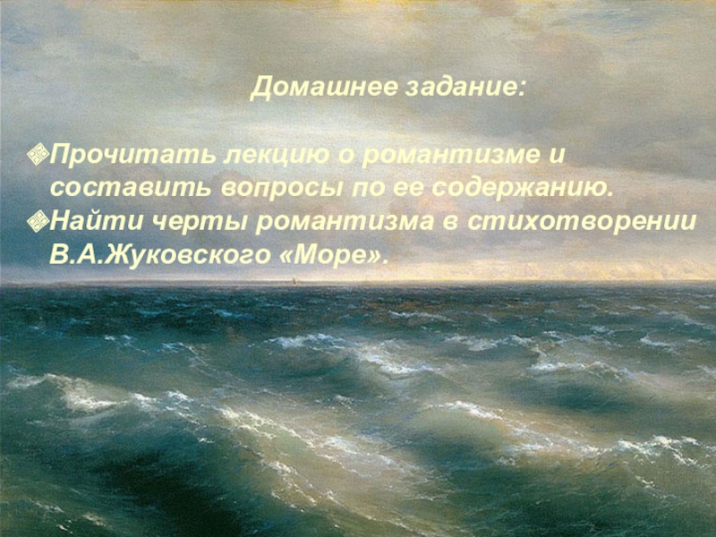 Найти черты романтизма в стихотворении В.А.Жуковского «Море».