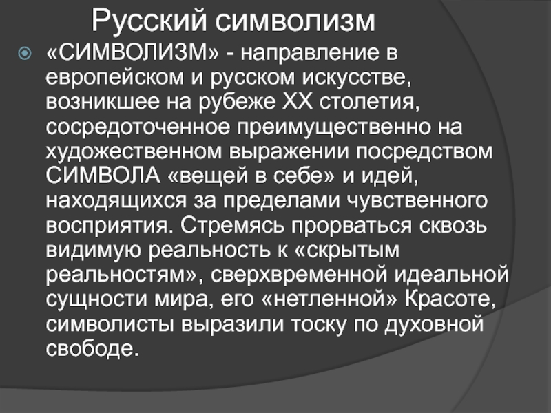 «СИМВОЛИЗМ» - направление в европейском и русском