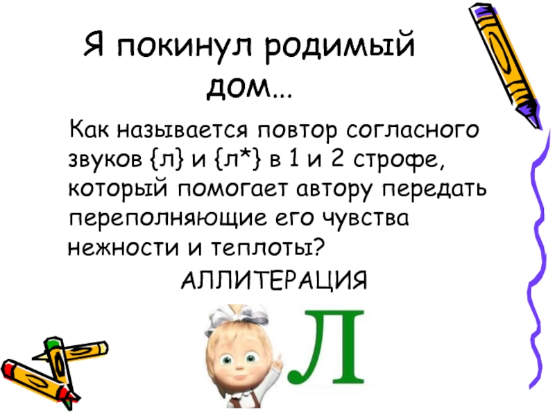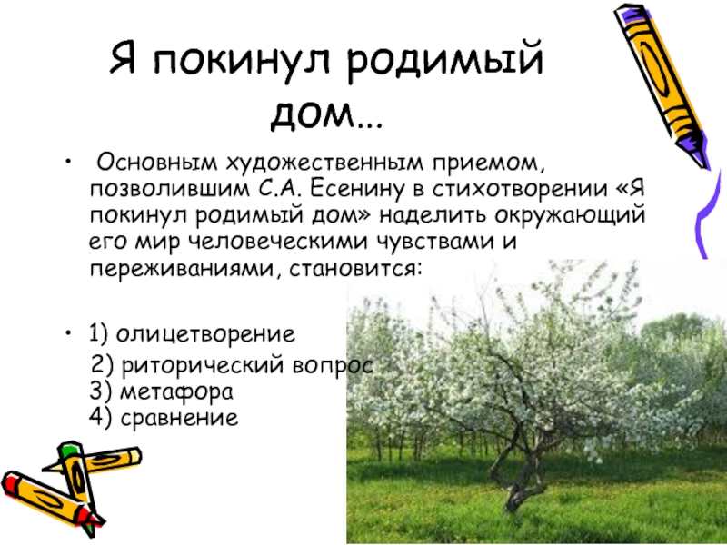 «Я покинул родимый дом» наделить окружающий его мир человеческими чувствами и переживаниями, становится: