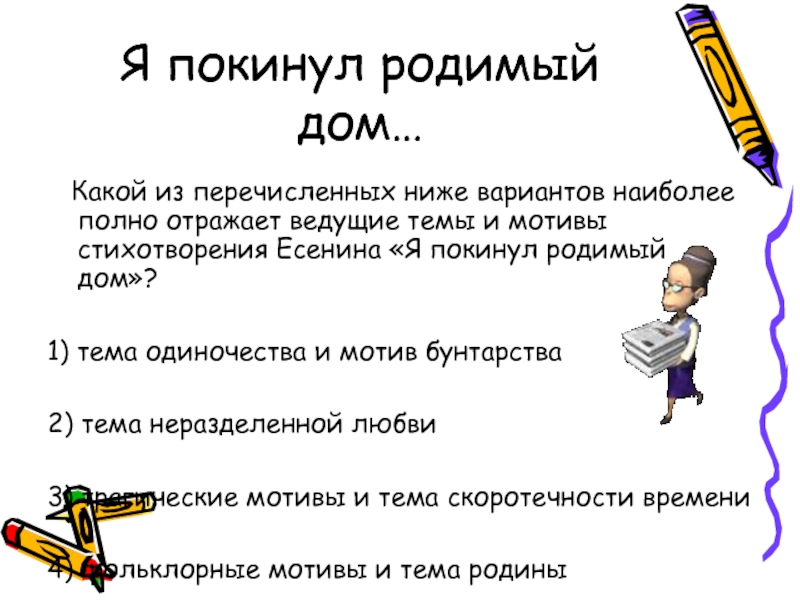 полно отражает ведущие темы и мотивы стихотворения Есенина «Я покинул родимый дом»?