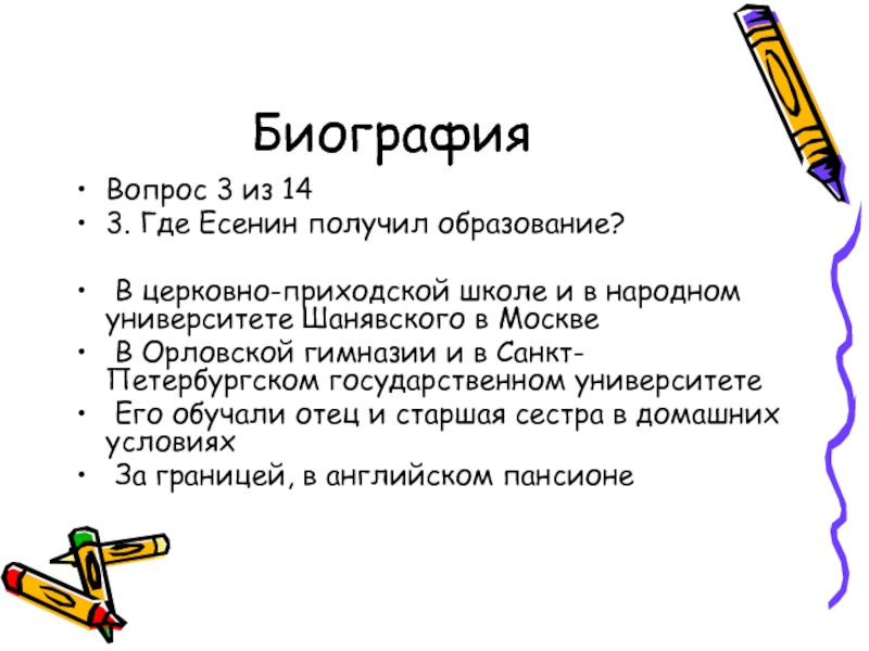 3. Где Есенин получил образование?