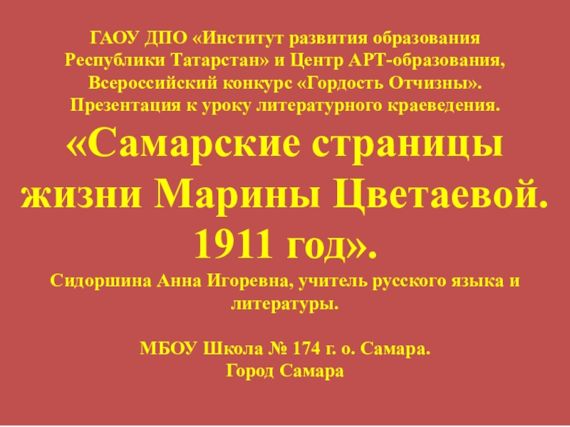 «Самарские страницы жизни Марины Цветаевой. 1911 год».